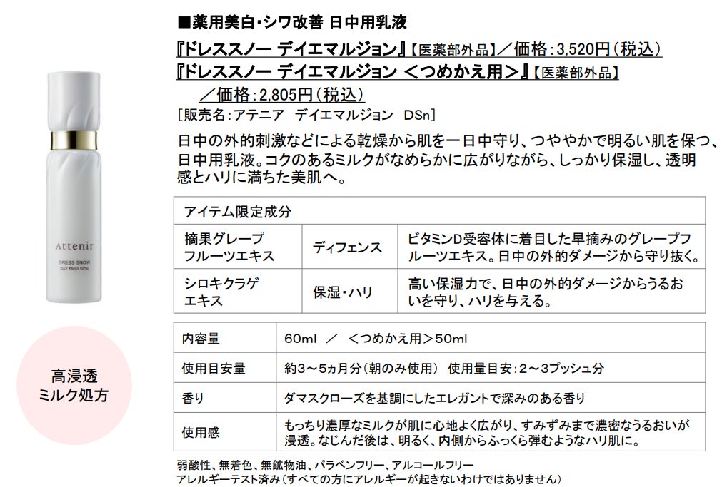 薬用美白・エイジングケアライン『ドレススノー』(2,805円〜4,950円)<税込>、薬用エイジングケアライン『ドレスリフト』(1,980円〜4,620円)<税込>を、9月19日(火)より発売します。
