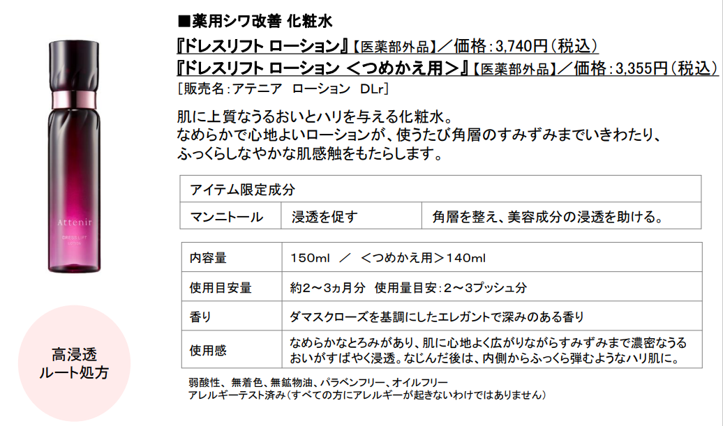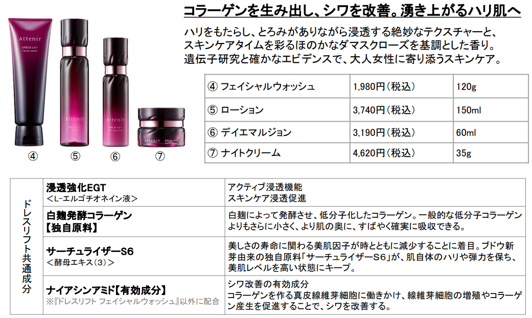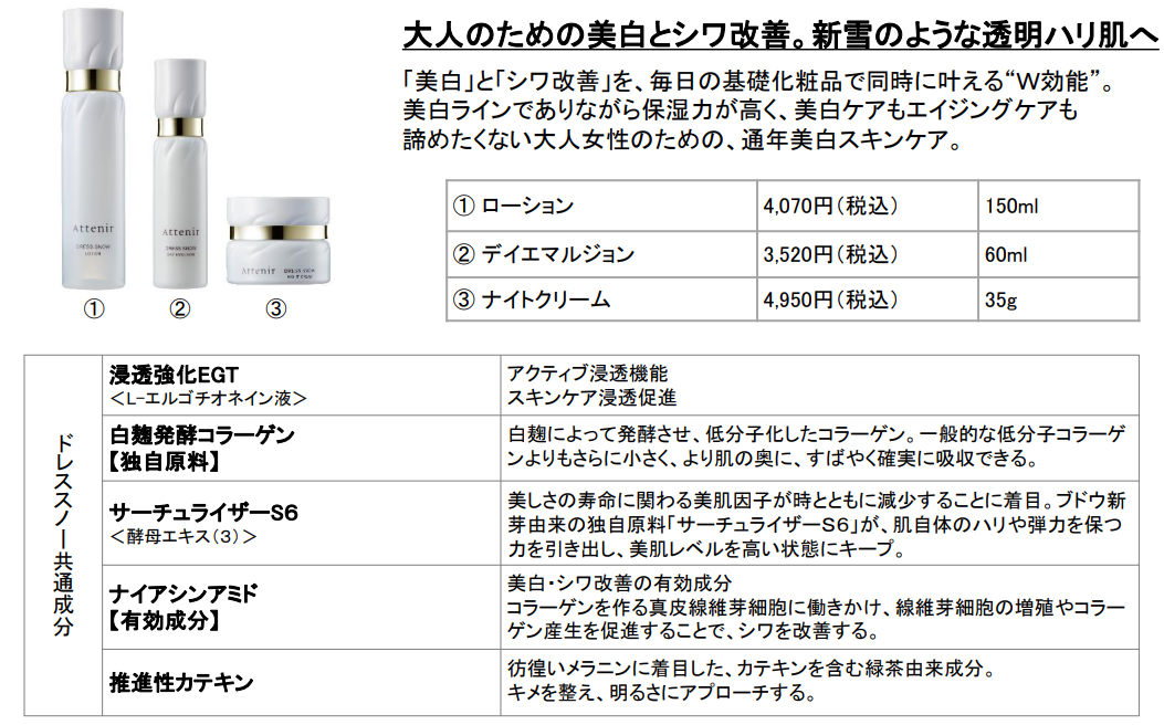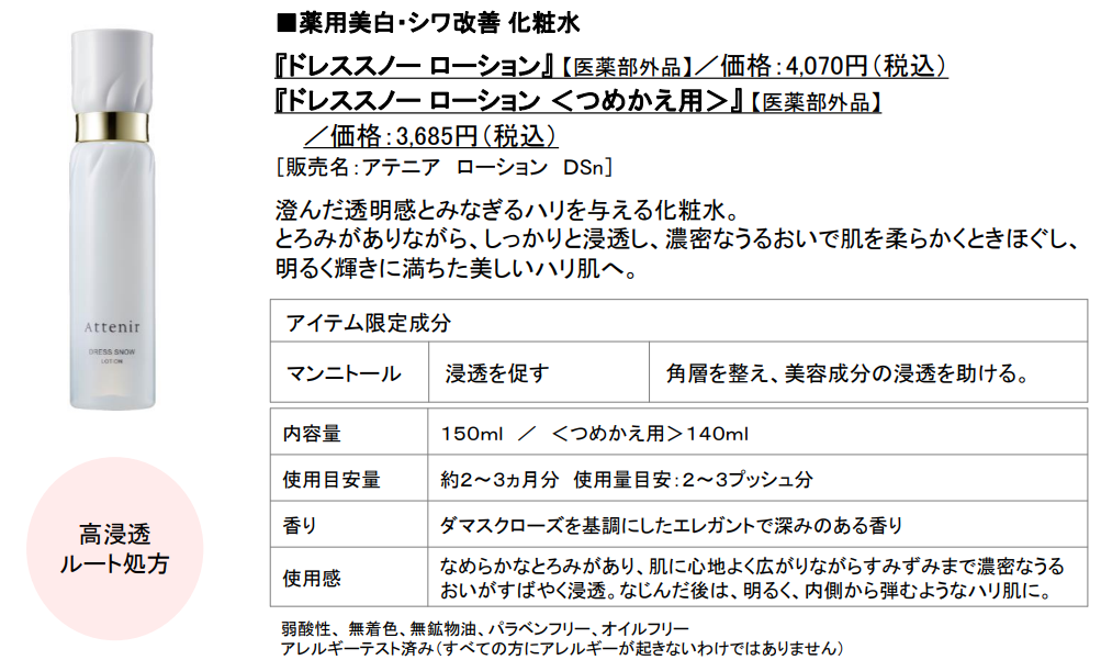 “スキンケアが効きにくくなった”大人の肌悩みへ挑戦。真の「浸透」を感じられるスキンケアへ進化。薬用美白・エイジングケアライン『ドレススノー』薬用エイジングケアライン『ドレスリフト』