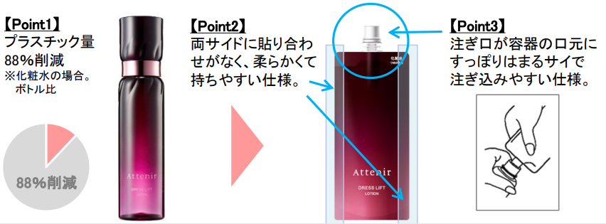 化粧品業界日本初「スマートエコパウチ」。環境に配慮した詰替用(化粧水/日中用乳液)