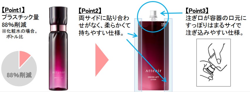 - 化粧品業界日本初「スマートエコパウチ」。環境に配慮した詰替用(化粧水/日中用乳液)