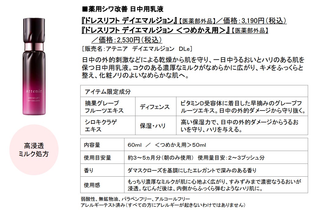 ※『ドレスリフト』ラインの医薬部外品は、『フェイシャルウォッシュ』を除く