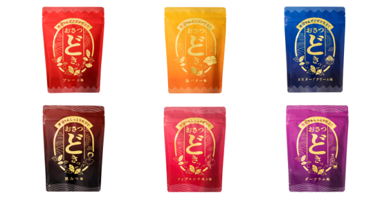 通常の「おさつどきっ」の約1.5倍の厚切りさつまいもを使用することで、さつまいもそのもののおいしさを贅沢に感じられます。ボリューム感のあるしっかりとした食感を楽しめる「ザクザク仕立て」の3種類(プレーン味、塩バター味、カスタードクリーム味)は、噛むほどに、さつまいも本来のおいしさが感じられる素材感がうれしいシリーズです。「しっとり仕立て」の3種類(黒みつ味、アップルシナモン味、ダークラム味)は、さつまいもと相性の良い素材のおいしさをさつまいもチップスに染み込ませた、まるでお芋スイーツのような味わいを感じることができるシリーズです。