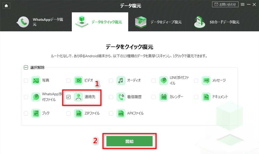 「データお預かり」アプリでは一旦バックアップをと取らないと電話帳を復元することはできません。また、連絡先が消える原因によって、もしシステムのエラーである場合はこのアプリでも対応しきれません。ここで、専用ソフト「DroidKit」を使用することをお薦めします。DroidKitはandroidデバイス専用のスマホ管理ソフトです。画面ロックの解除からGoogleアカウントの削除、ルート化なしで電話帳や写真、メッセージなどを復元することができます。データを復元する前にまずは無料で復元できるデータを確認しましょう。