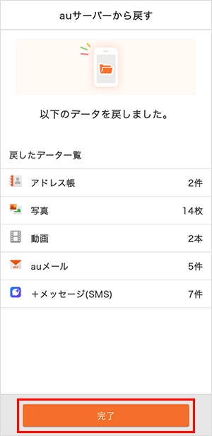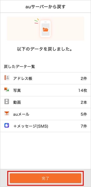 ステップ4、すると選択されたデータが自動的に復元されます。データの戻しが終わったら「完了」をタップします。