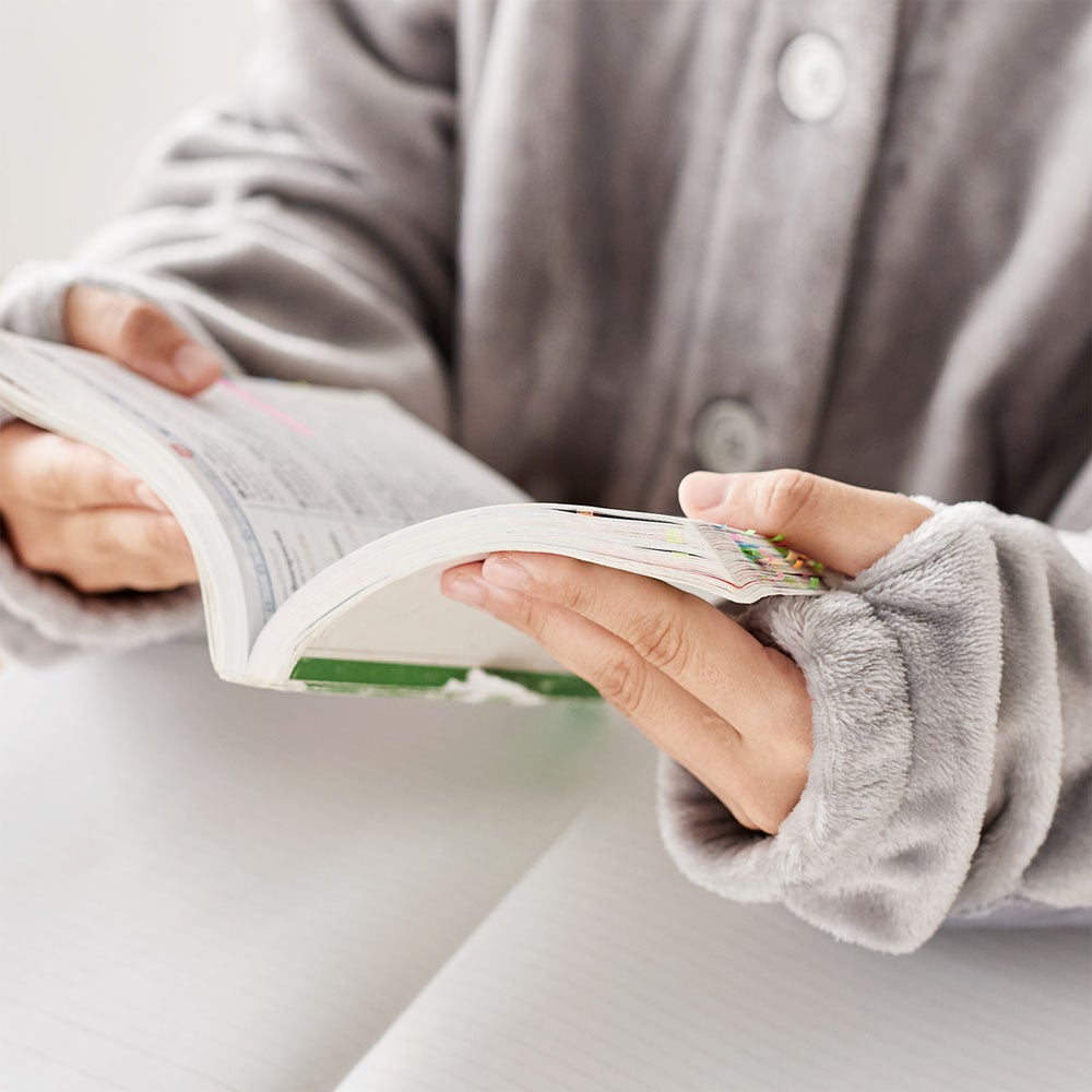 「ご祈祷着る毛布」は、受験をする子どもたちのために開発した冬の室内着です。ベルメゾンで人気の、吸湿発熱性のある暖かいマイクロファイバー生地を使用し、椅子に座ってもくるぶしまで覆う長めの丈が特徴です。「着る毛布」という名にふさわしく、受験シーズンの冬に子どもを寒さから守り、勉強に集中できる環境を提供します。機能面では、消しゴムのカスを巻き込まないよう肘部分には「エルボーパッチ」を採用し、手先まで暖かく保つために親指を出せる「サムホール」付きです。さらに、合格祈願を込めた「五角(合格)形」の内ポケットなど、縁起を担ぐ工夫が随所に盛り込まれています。