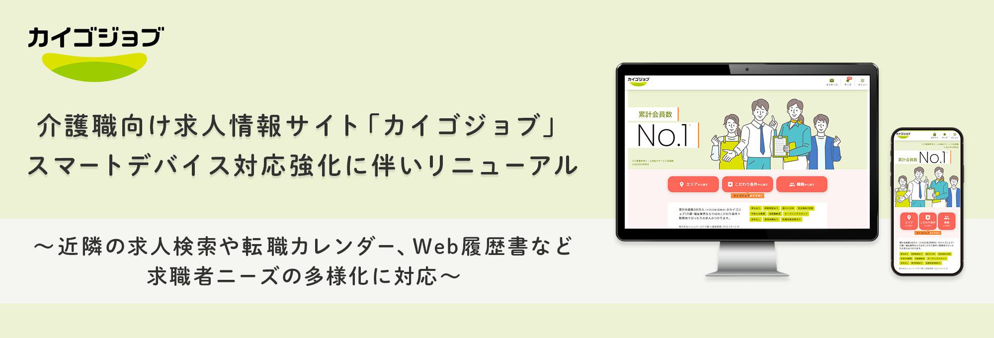 介護職向け求人情報サイト「カイゴジョブ」スマートデバイス対応強化に伴いリニューアル