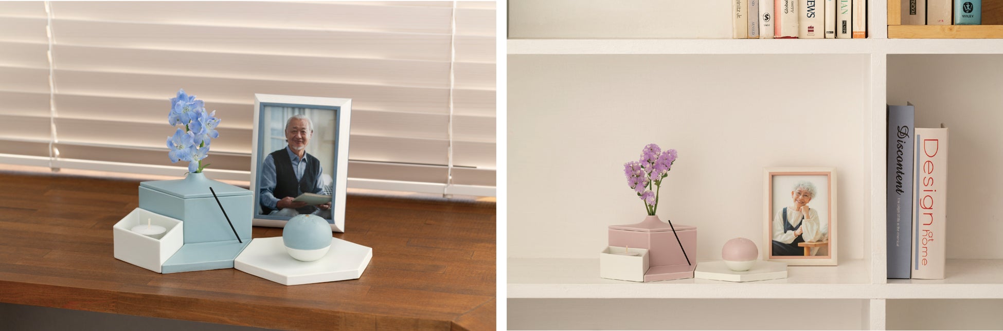 現在、手元供養商品は一家にひとつから、一人ひとつへパーソナル化されつつあります。リビングだけではなく、自室や寝室など限られたスペースにも置けて、日常の中に大切な方への想いと共に、安らげる時間と場所を持ってほしいという願いを込めて開発しました。