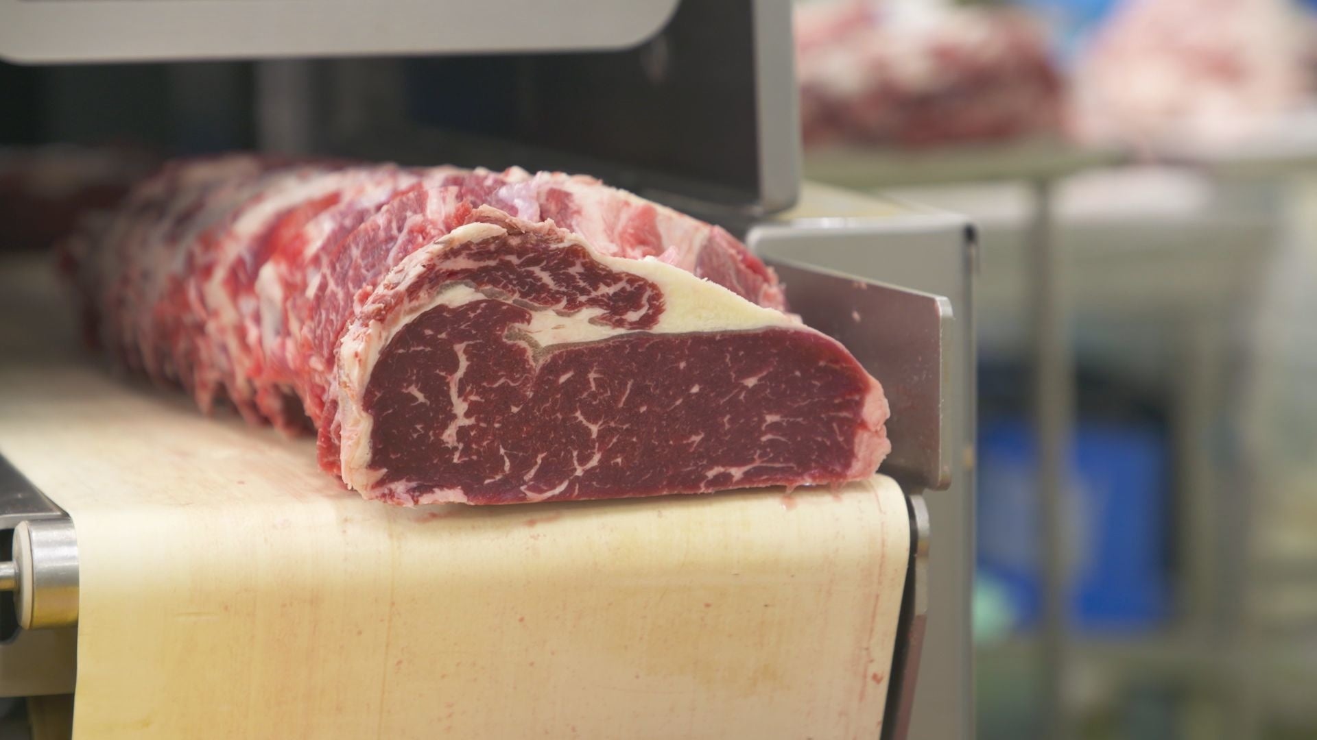 「ブロンコビリー」の工場(春日井市)をのぞくと…大きな牛肉の塊が続々登場。肉は一切無駄にしない。ステーキ、カットステーキ、ハンバーグ用などに、プロの眼でキレイに残さず切り出していく…。脂身も肉汁にいかす徹底ぶり。ステーキと同じ上質肉からカットされたハンバーグは次なる工程へ。