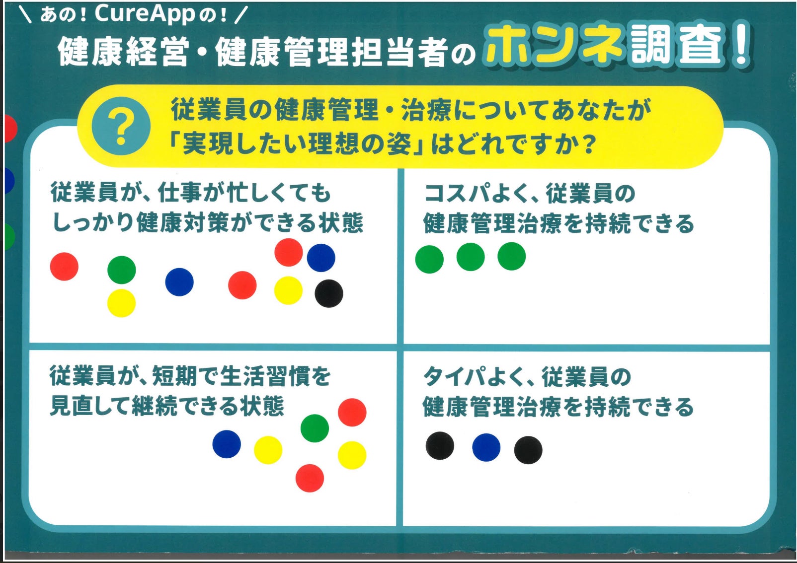 最も多くの票が集まったのは「仕事が忙しくても健康対策ができる」でした。次いで「短期間で生活習慣を見直して継続できる状態」に票が集まりました。