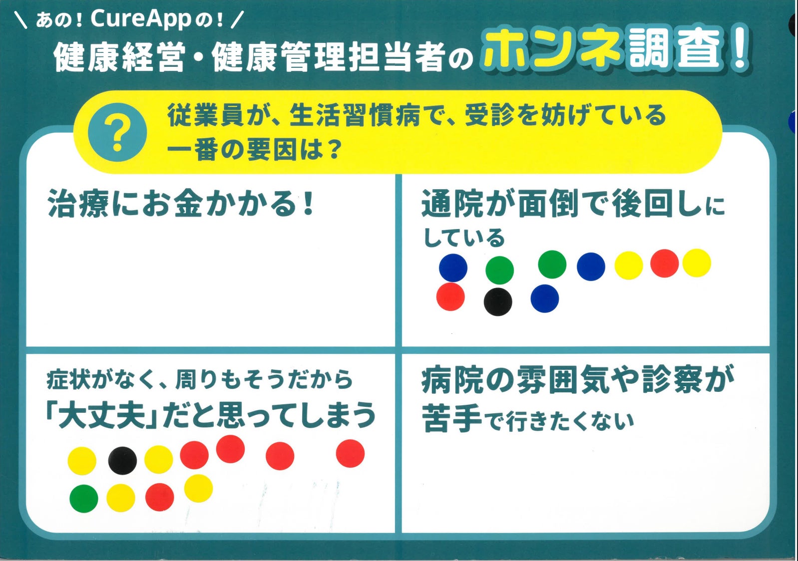 セミナーの合間には、ご来場いただいた皆様によるシール投票を実施。現在の保健事業における傾向を可視化しました。