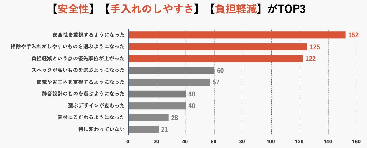 【富裕層ママ251人に聞いた家電の動向調査】子どもが生まれてからの家電選びTOP3は「安全性」、「手入れのしやすさ」もうひとつは?