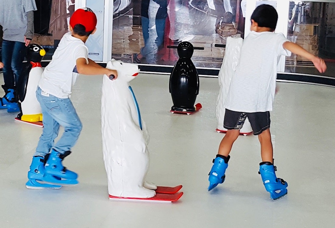 『ノンアイススケートリンク』とはアクリル板を使用したスケートリンクで,転んでも冷たく感じたり濡れたりはせず,氷ではないため水も電気も使わないエコなスケートとして,お子さまから大人まで楽しんでいただけます。