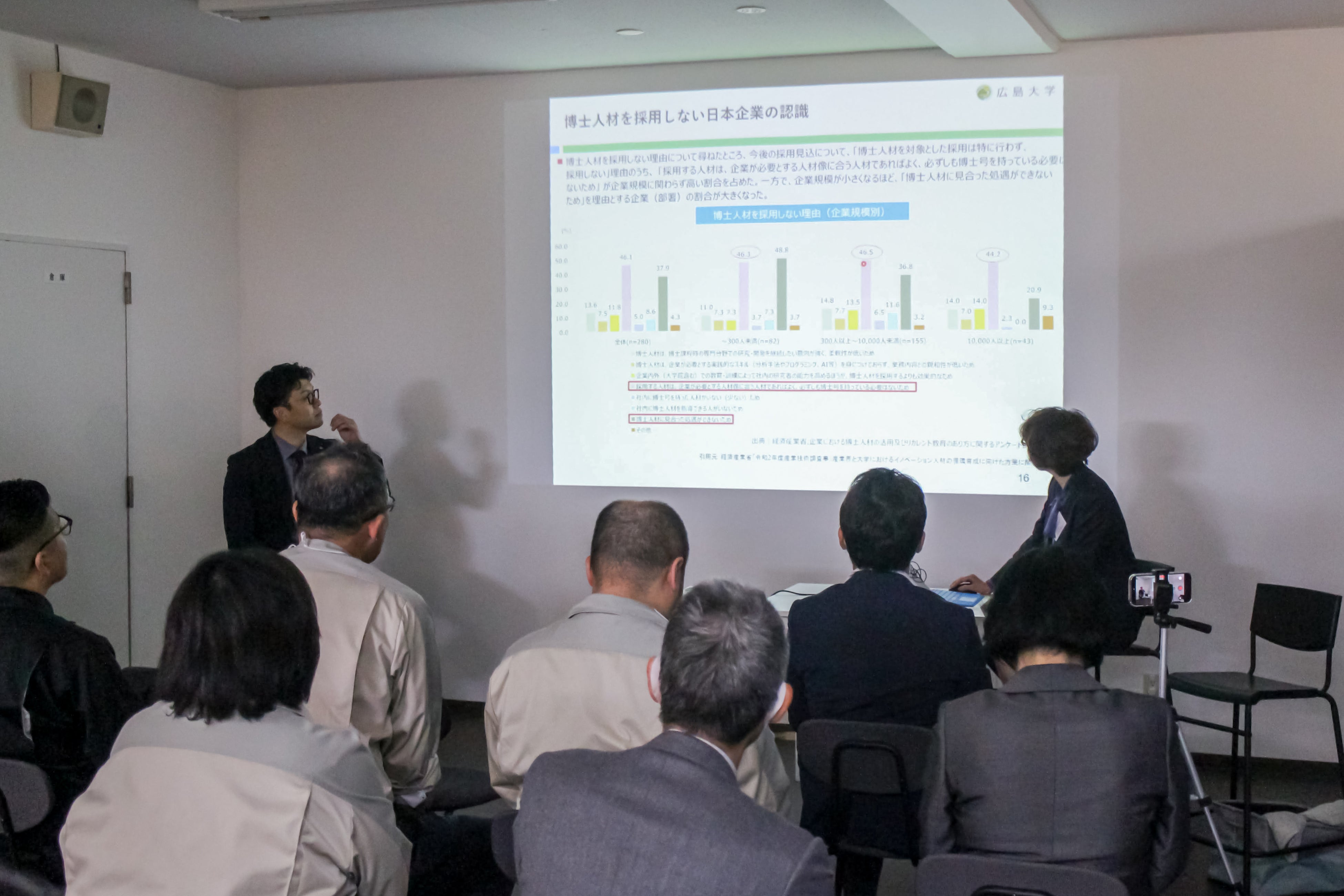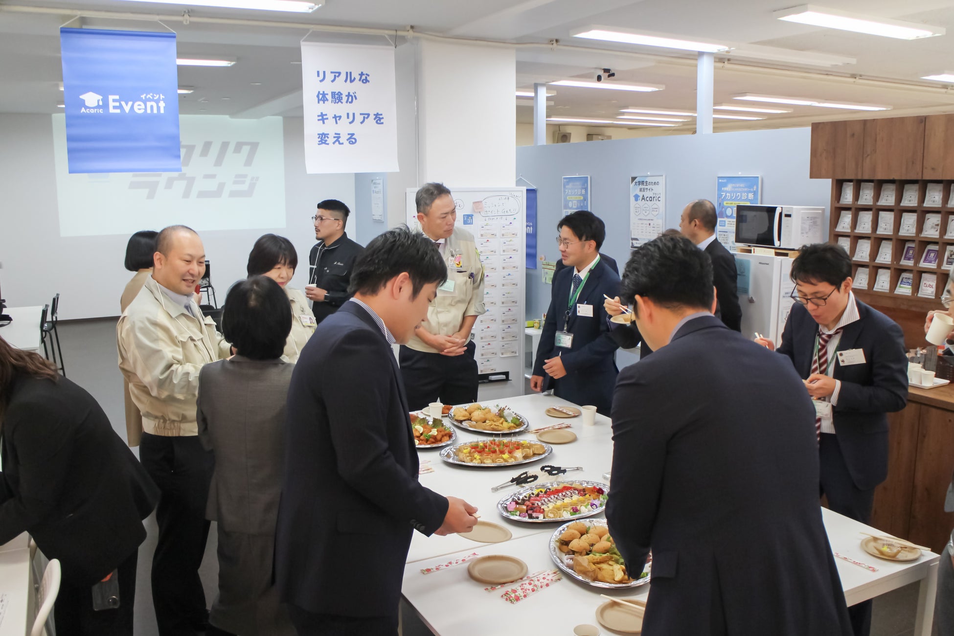 今回の1周年記念イベントでは、広島大学とアカリクの関係者に加え、博士人材の採用に関心を持つ地元企業が参加しました。