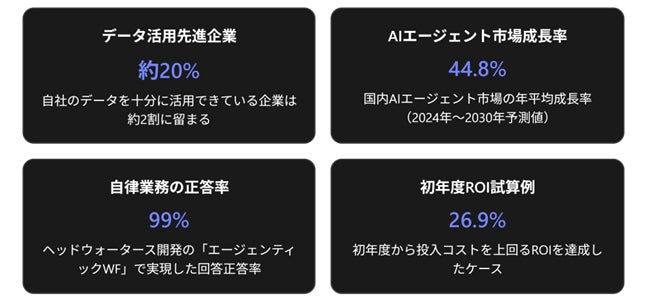ヘッドウォータースは、労働力人口が減少する国内市場において、AIとデータを活用した業務改革が企業の競争力維持に不可欠であると考えています。