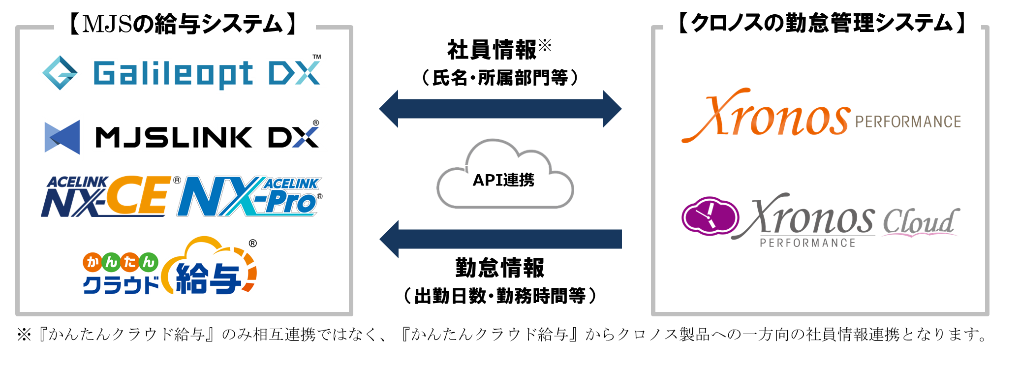 財務・会計システムおよび経営情報サービスを開発・販売する株式会社ミロク情報サービス(本社:東京都新宿区、代表取締役社長:是枝 周樹、以下「MJS」)は、勤怠管理システム・タイムレコーダーの開発および販売・保守サービス事業を行うクロノス株式会社(本社:東京都千代田区、代表取締役社長:大牧 充、以下「クロノス」)の勤怠管理システム『クロノスPerformance』ならびに『クロノスPerformanceクラウド』と、MJSの給与システム5製品とのAPI連携を開始しました。