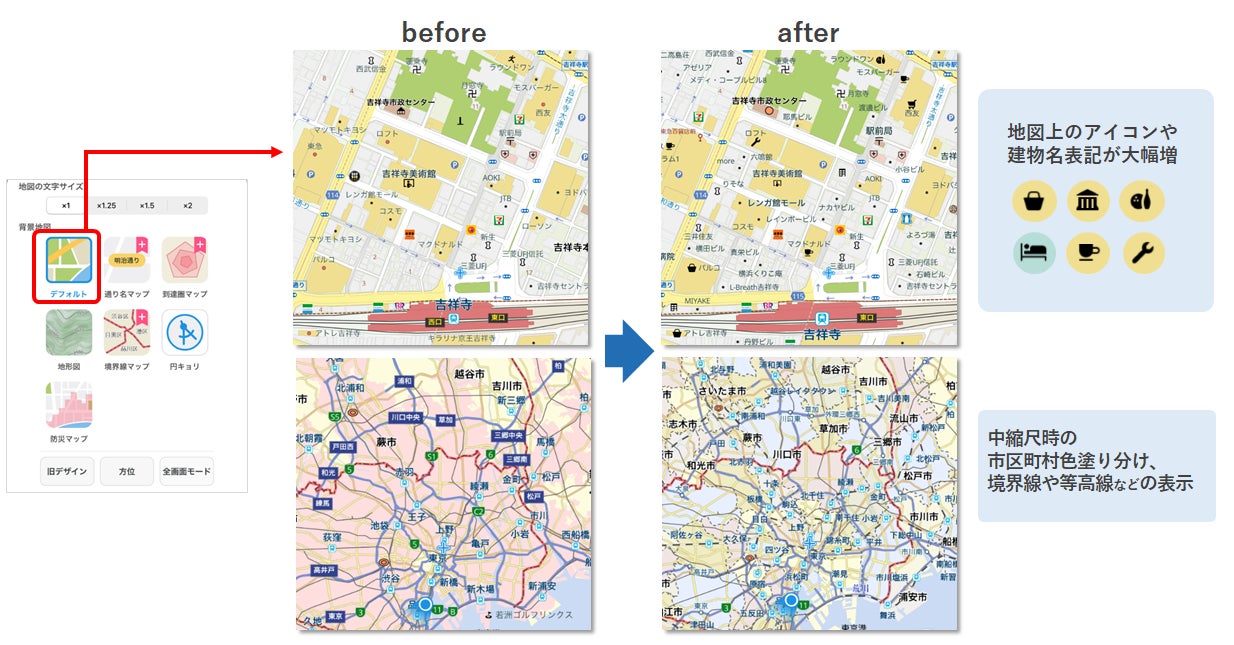 6/3測量の日、地図上のアイコンや中縮尺時の情報量が大幅増!紙地図に近いデザインへ