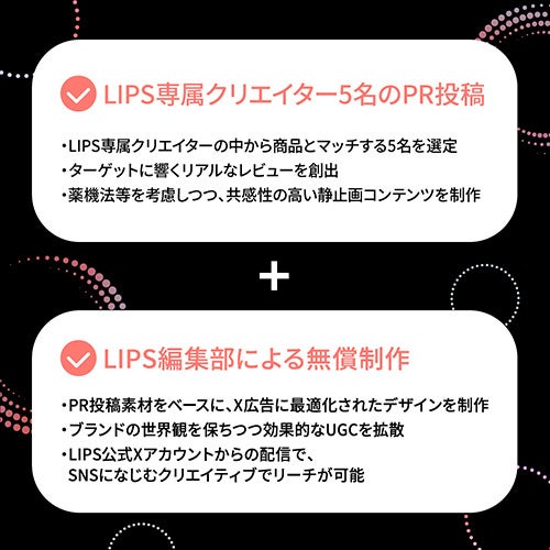 また、LIPS内で培われたクリエイターの表現力と編集部の知見を掛け合わせることで、ブランドの魅力を自然に伝え、ユーザーの態度変容を促す新しい広告サービスを提供します。