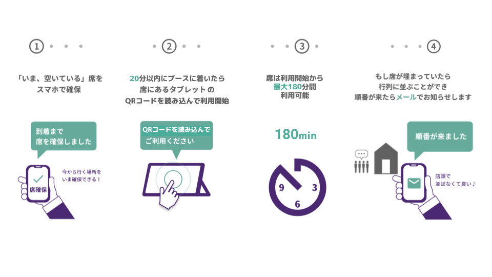 座席は220円(税込)/30分で使うことができるようになっており、店舗の座席を収益源として活用するといった展開も期待できます。