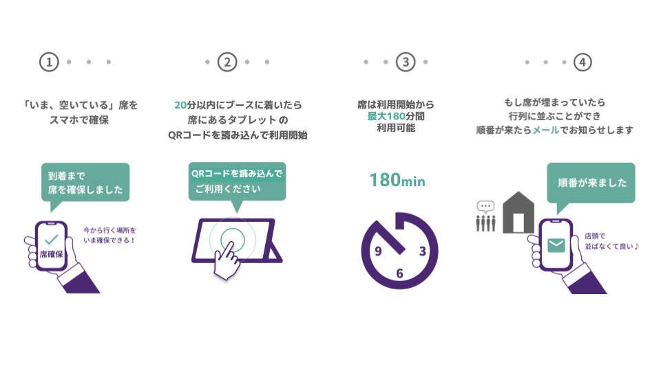 なお「AutoKeep」はすでに、1人用ブース席が設置されているタリーズコーヒー 羽田イノベーションシティ店やエミオ東久留米店で導入されており、導入店舗でおこなった利用者アンケートでは、回答者の90%から「サービスの継続利用を希望する」といった声を頂いています。今回の導入はそういったこれまでの導入結果を受けての拡大となります。