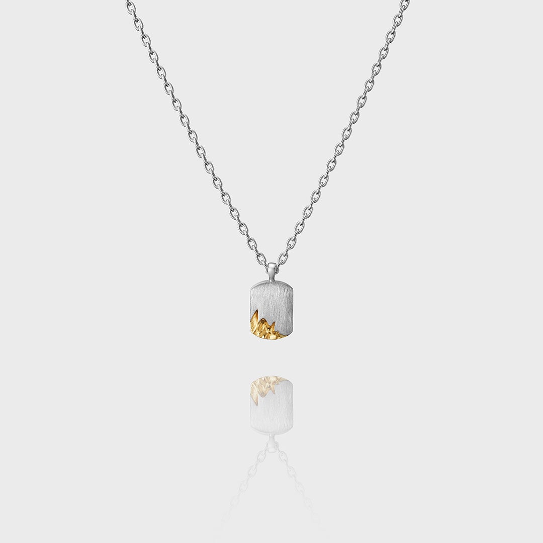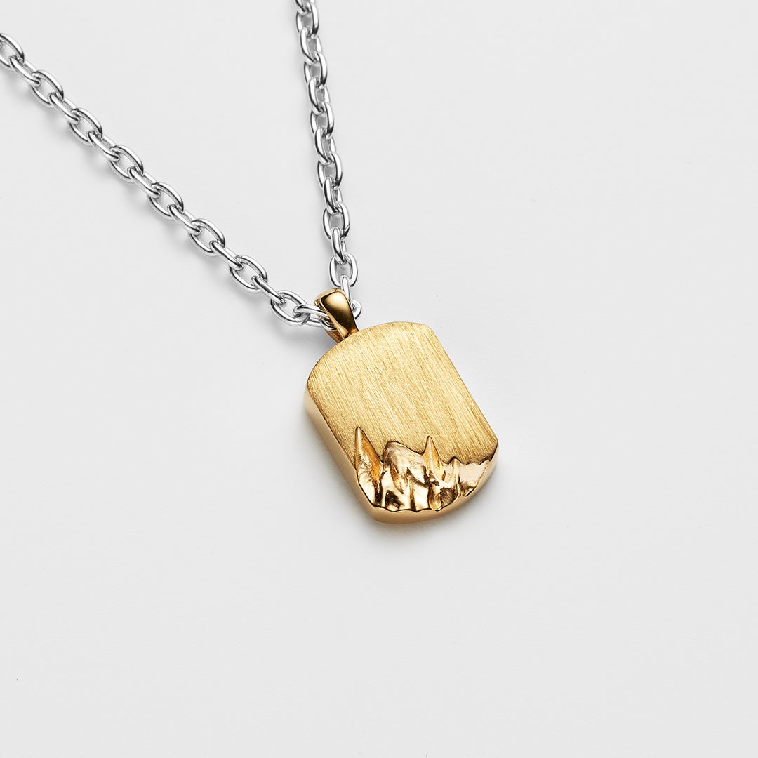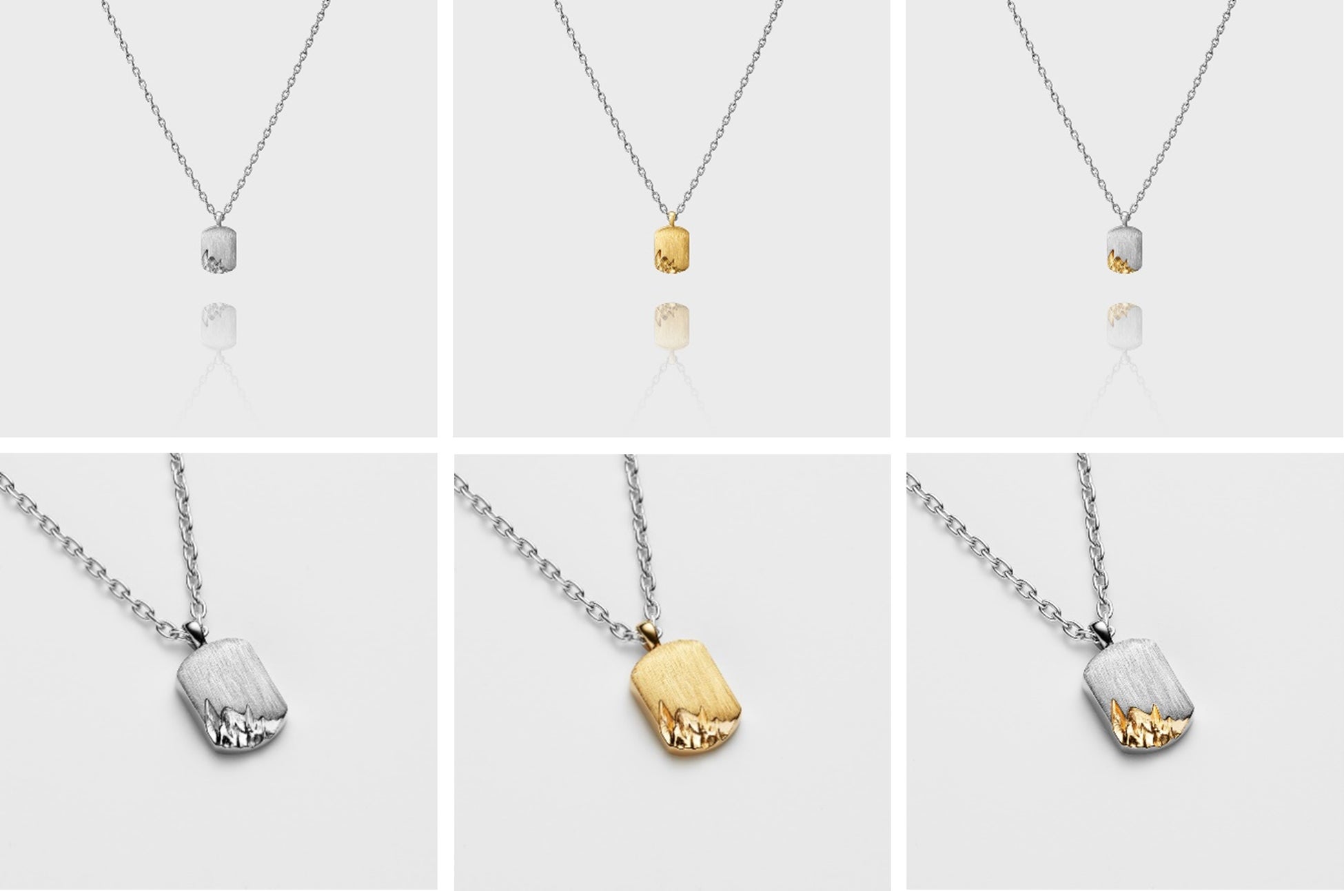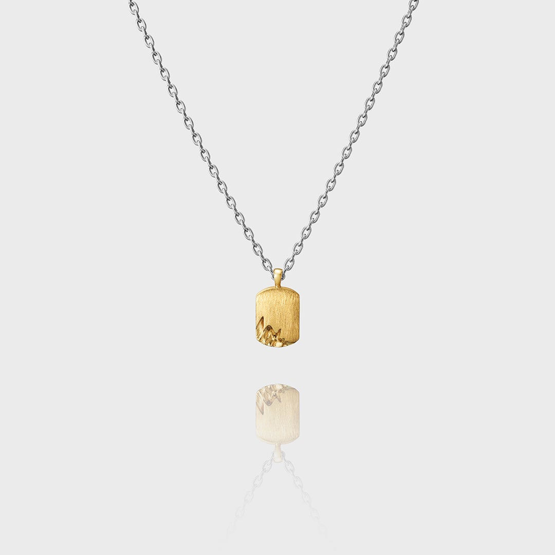 スクエアデザインのトップに、ヘアライン加工を施したテクスチャーでアクセントを加えたネックレスが登場。エッジには、引っ掻いたような凹凸が程よい立体感をもたらす粋な工夫を施しました。イエローゴールドカラーが光を受けて輝く一本や、シルバーに差し色が覗くリッチでユニークな一本も。自分らしさを演出するカラーを選んで。