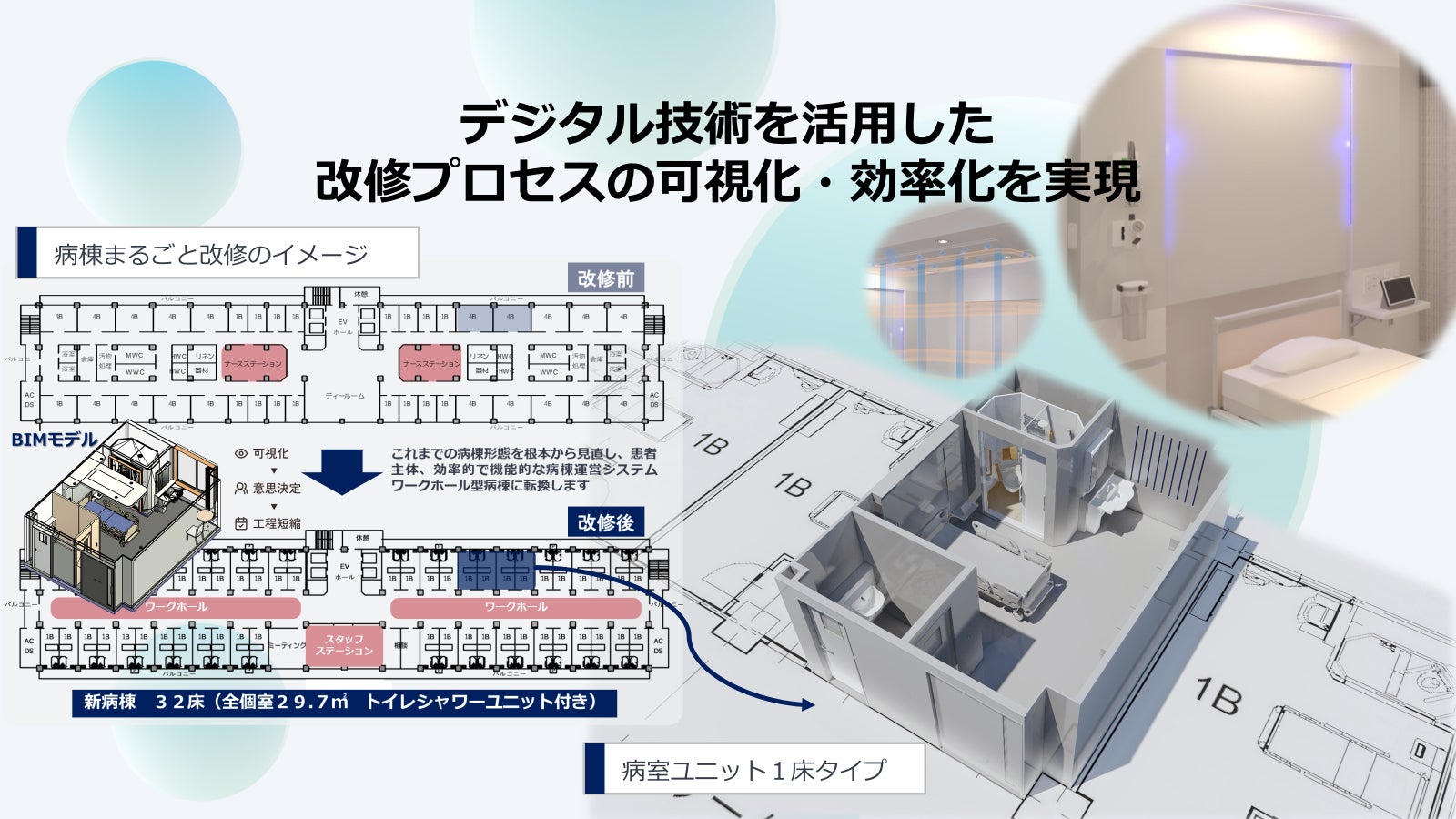 少子高齢化と人口減による病床数削減、急務の医療施設の老朽化対策を背景に、医療関連の複数企業と次世代型病室リノベーションプロジェクト(個室病室化の促進)を開始