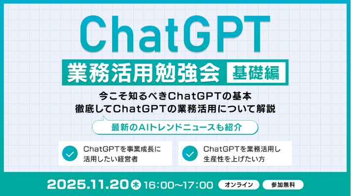 ChatGPTの基礎から、具体的なビジネス活用事例までを分かりやすく解説する勉強会を開催します。すでに400人以上が受講し、その効果を実感しています。ChatGPTをビジネスのインフラとして活用し、業務効率化を図りたい方は、ぜひご参加ください。