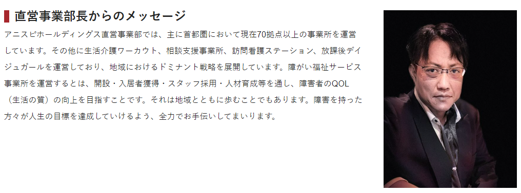 株式会社アニスピホールディングスのホームページがリニューアルされました。直営拠点をまとめたページがついに完成!!