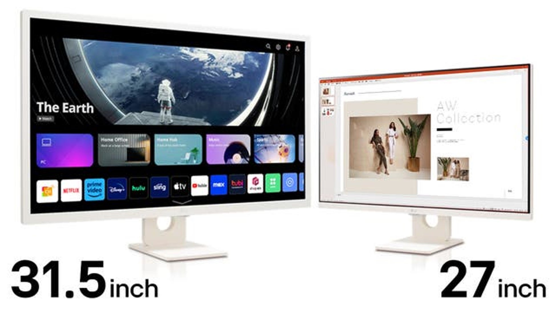この度、新たに発売する2モデルは、LG SMART Monitorシリーズが実現する快適な日常を、どなたでも体験できるように「より使いやすいサイズ、より手に入れやすい価格」を実現し、「私の暮らしにフィットする。」がコンセプトです。自然で鮮やかな発色を実現するフルHDのIPSパネルを搭載し、使用環境と用途に合わせてお選びいただけるよう、大画面で動画視聴を楽しみたい方向けの31.5インチに加え、LG SMART Monitorシリーズでは初となる、デスクに置きやすい27インチのサイズバリエーションを追加。生活の中心に配置されることを考慮し、マットなホワイトカラーのシンプルなデザインに仕上げました。