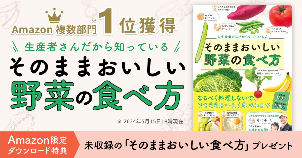 【Amazon8カテゴリーで1位】食べチョク著『生産者さんだから知っている そのままおいしい野菜の食べ方』が、売れ行き好調。発売直後からベストセラー1位。