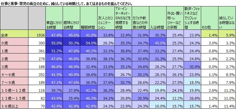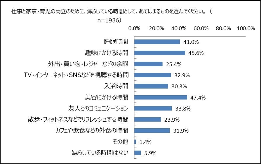 ママが仕事と家事育児両立のため最も減らしているのは美容