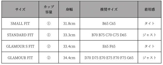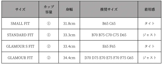 サイズ:SMALL FIT/STANDARD FIT/GLAMOUR S FIT/GLAMOUR FIT