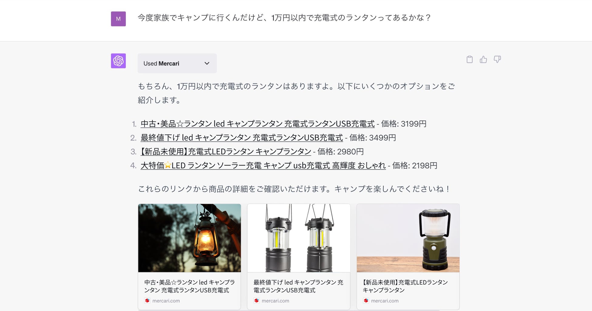 メルカリ、「Mercari ChatGPTプラグイン」の提供を開始