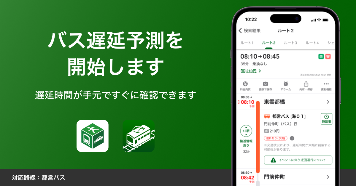 (2023/3/28)『NAVITIME』『乗換NAVITIME』、リアルタイムなバス遅延を考慮したルート検索が可能に