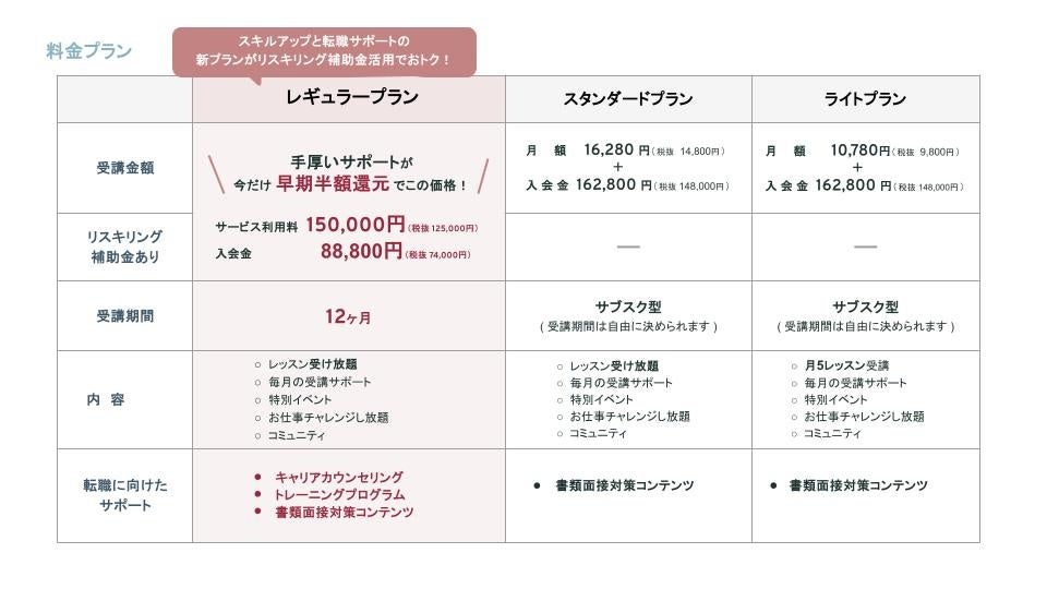 ■ 受講料が最大70%還元。キャリアチェンジ(転職)に特化した新プラン「SHElikesレギュラープラン」について
