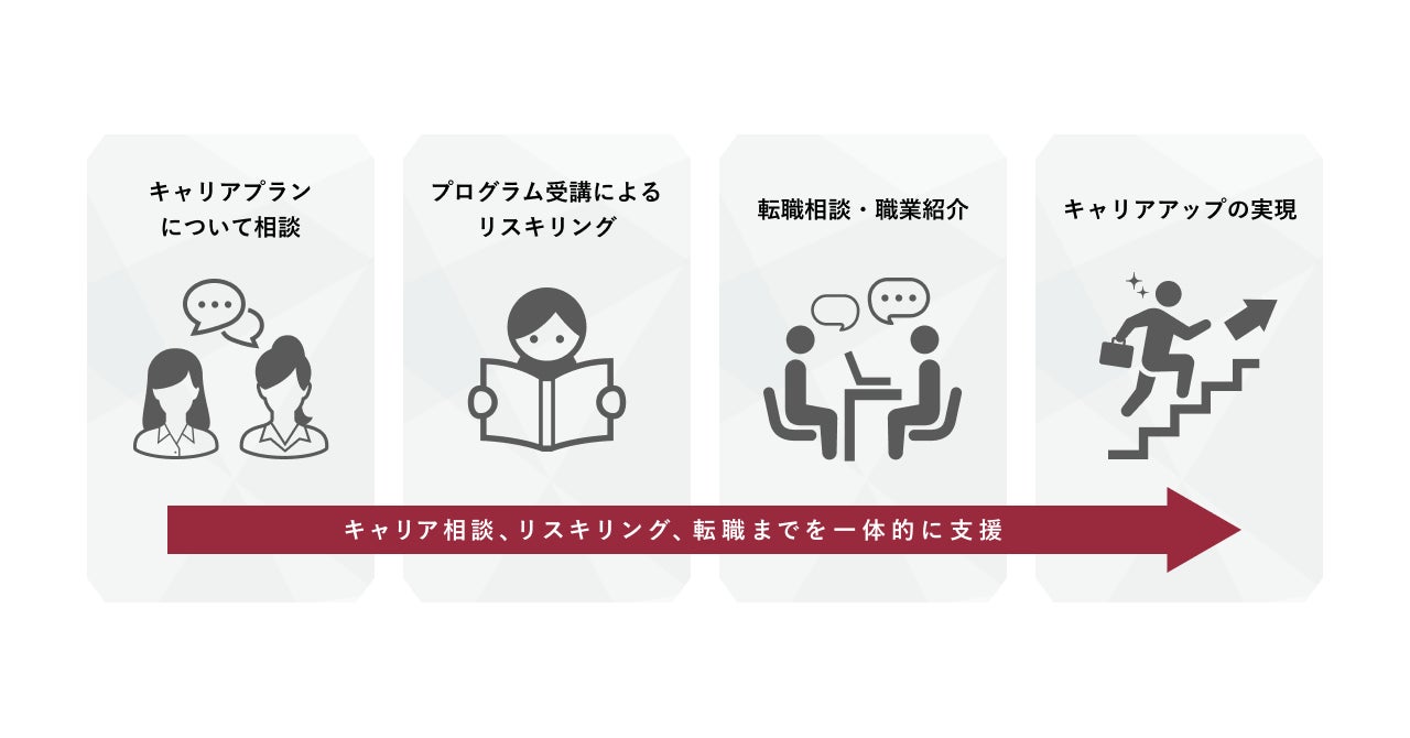 今回、新たに提供開始する「SHElikesレギュラープラン」は、キャリアチェンジ(転職)を目指す女性を対象としたプランです。キャリアカウンセリングなど所定のプログラムを修了していただき、転職先の紹介から転職の実現までをサポートいたします。