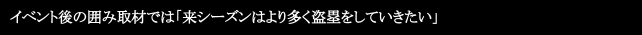 - イベント後の囲み取材では「来シーズンはより多く盗塁をしていきたい」