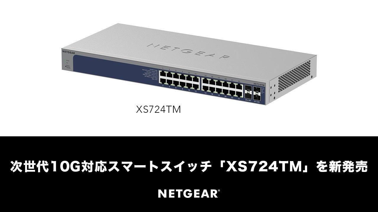 2025年4月30日、米国シリコンバレーに本社を置くネットギアジャパン合同会社(所在地:東京都中央区、代表:大仁田 良平)は、クラウド管理機能を備えたフル10G対応スマートスイッチ「NETGEAR XS724TM(24ポート)」を発表し、本日より販売を開始いたしました。
