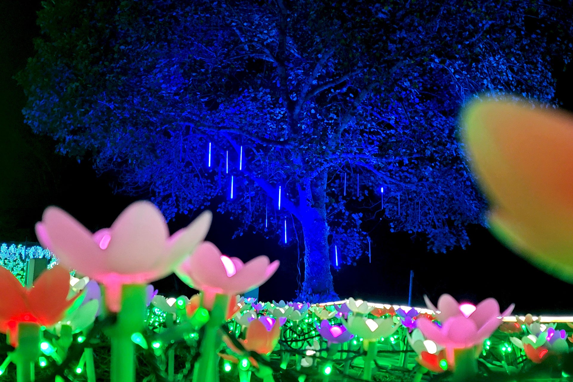 テーマは「童話の世界」。夜が訪れると草花や大樹が光に包まれ、星を散りばめたかのように彩られ、まるで物語の主人公が迷い込んだような不思議な世界が広がります。