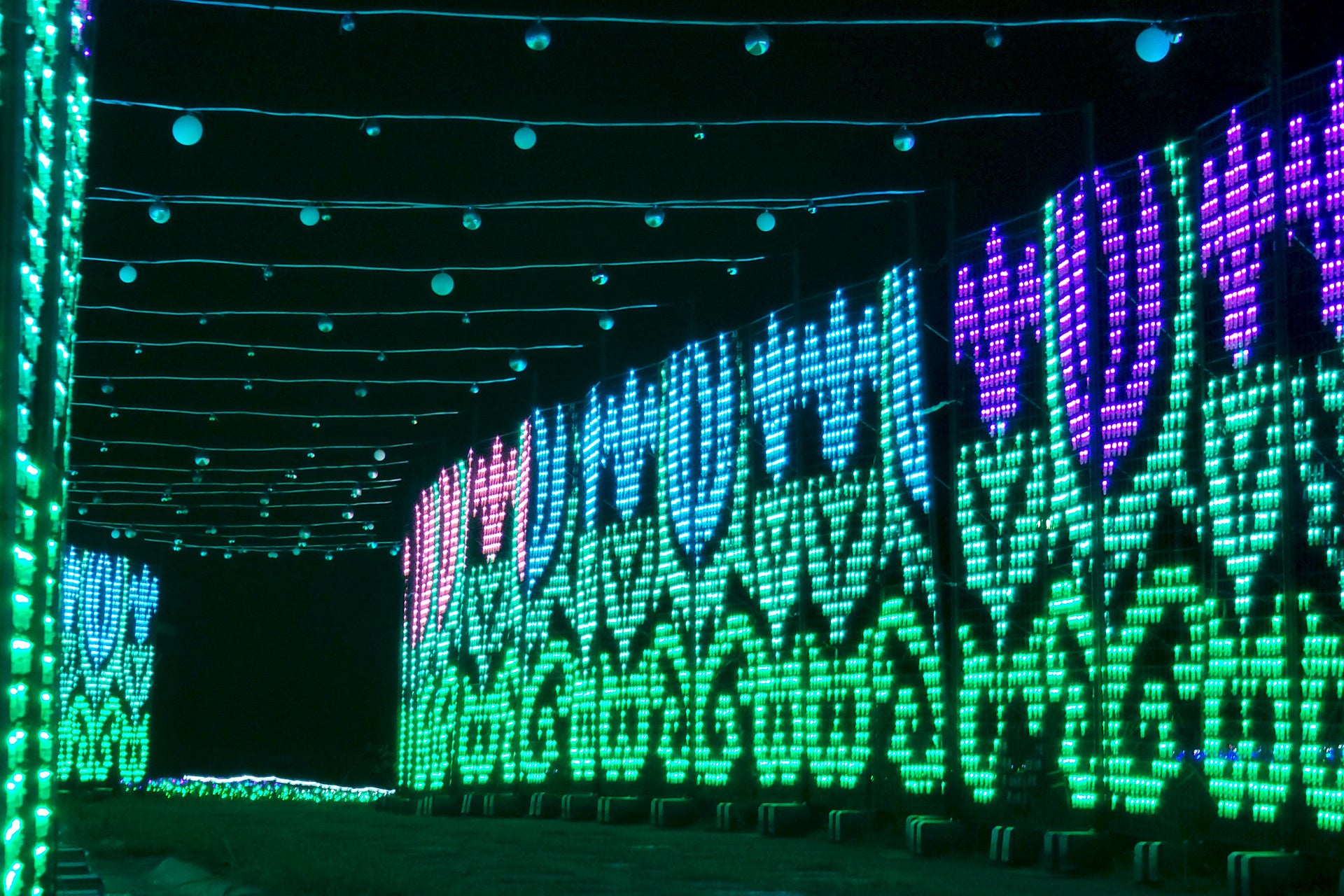 エリアごとに様々な色彩でイルミネーションが楽しめる幻想的な空間・・・