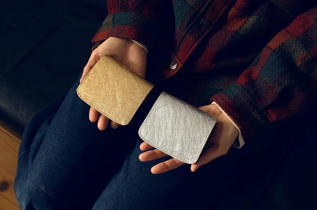 開運日に向け新色「シルバー」が登場。箔押しの本革で、革職人がハンドメイドするミニ財布。