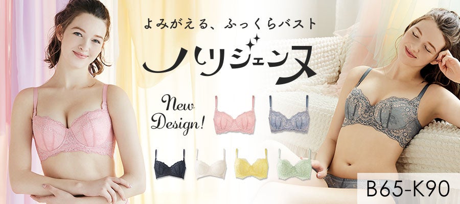 よみがえるふっくらバスト!授乳や加齢でしぼんでしまった胸元を若々しいふっくらバストに。リピーター続出の人気ブラ「ハリジェンヌ®︎」に春の新色・ピンクとブルーが新デザインで登場
