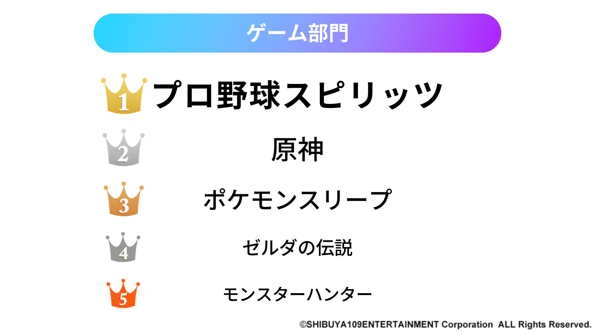 Z世代男子が最もお金をかけていることでもあるゲーム(※2)。ゲームクリアまでのプロセスが多様で、ゲーム実況等でプレイの様子を切り抜いて共有したくなるゲームが多くノミネートされました。またスマホやゲーム機など複数のデバイスでシームレスにプレイできることや、ゲームとして楽しいだけでなく、健康や思考力、勉強などにも役に立つ「エデュテイメント性」が重視されています。