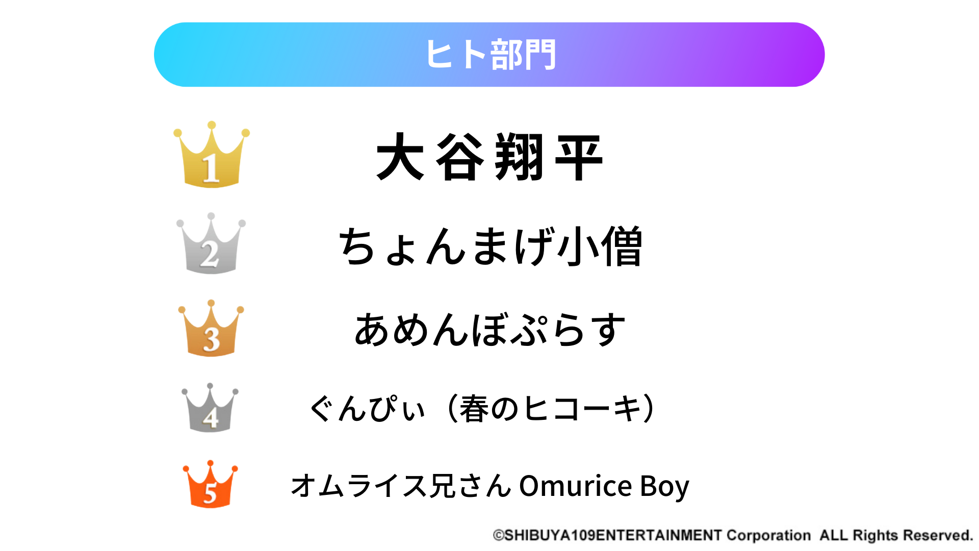 今回は「ヒト部門」「アーティスト部門」「ファッション部門」「ゲーム部門」「コンテンツ部門」「体験部門」の6部門にて大賞を決定しました。