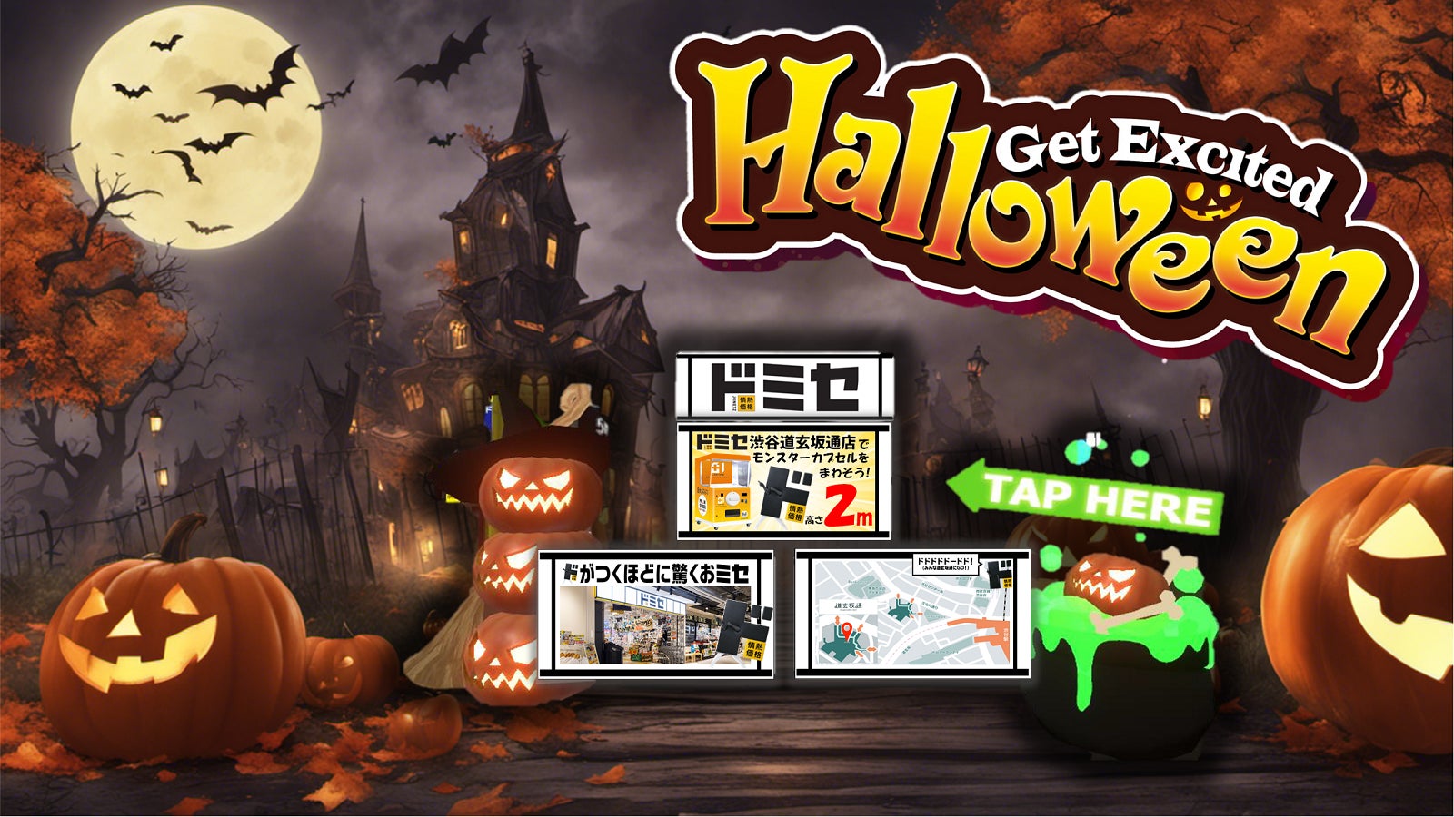 ドミセのブースを訪れると、高さ2mの『モンスターカプセル』を回すQRコードをGETできる!ドミセ渋谷道元坂通り店で情熱価格の商品をGETしよう!