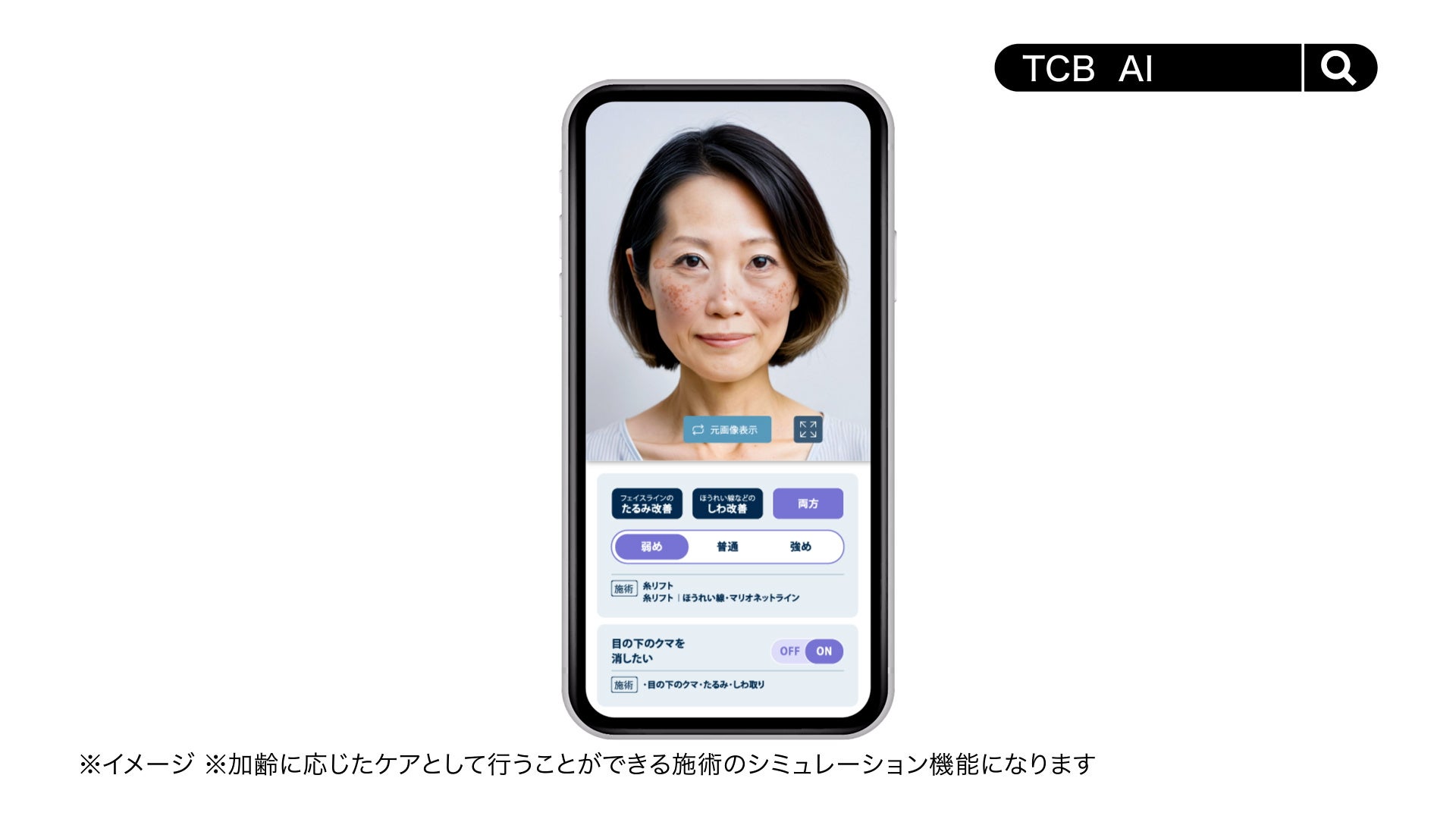 ⽇本全国に105院(2025年6⽉現在)を展開する美容クリニック「TCB東京中央美容外科」(理事長:寺西 宏王、以下「TCB」)の「TCB AI シミュレーター for エイジングケア」に新たに搭載されたシミ取りシミュレーション機能をテーマとしたテレビCM「TCB AIエイジングケア シミ取り」篇が、6月11日(水)より全国でオンエアされます。美容医療の間口を広げ、より多くの方へ美しくある素晴らしさを広めてまいります。