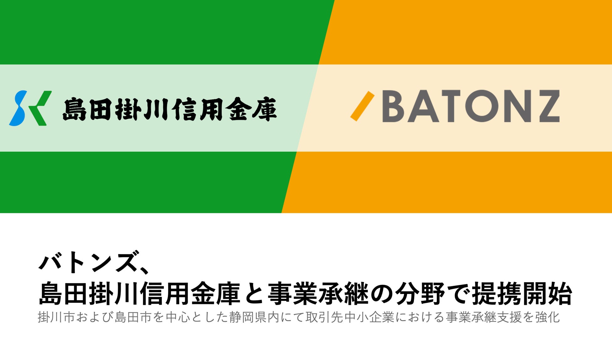 バトンズ、島田掛川信用金庫と事業承継の分野で提携開始