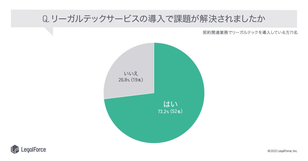 ・リーガルテックサービスの導入で課題が解決されたと回答した割合は73.2%