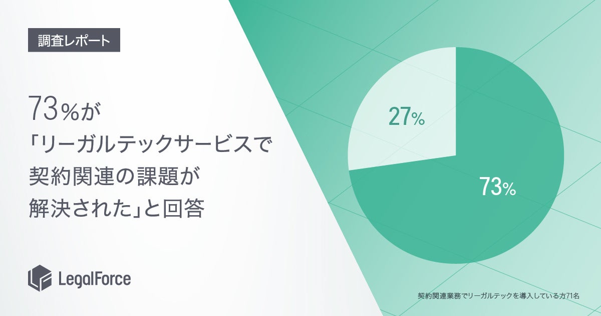 【LegalForce調査レポート】73%が「リーガルテックサービスで契約関連の課題が解決された」と回答