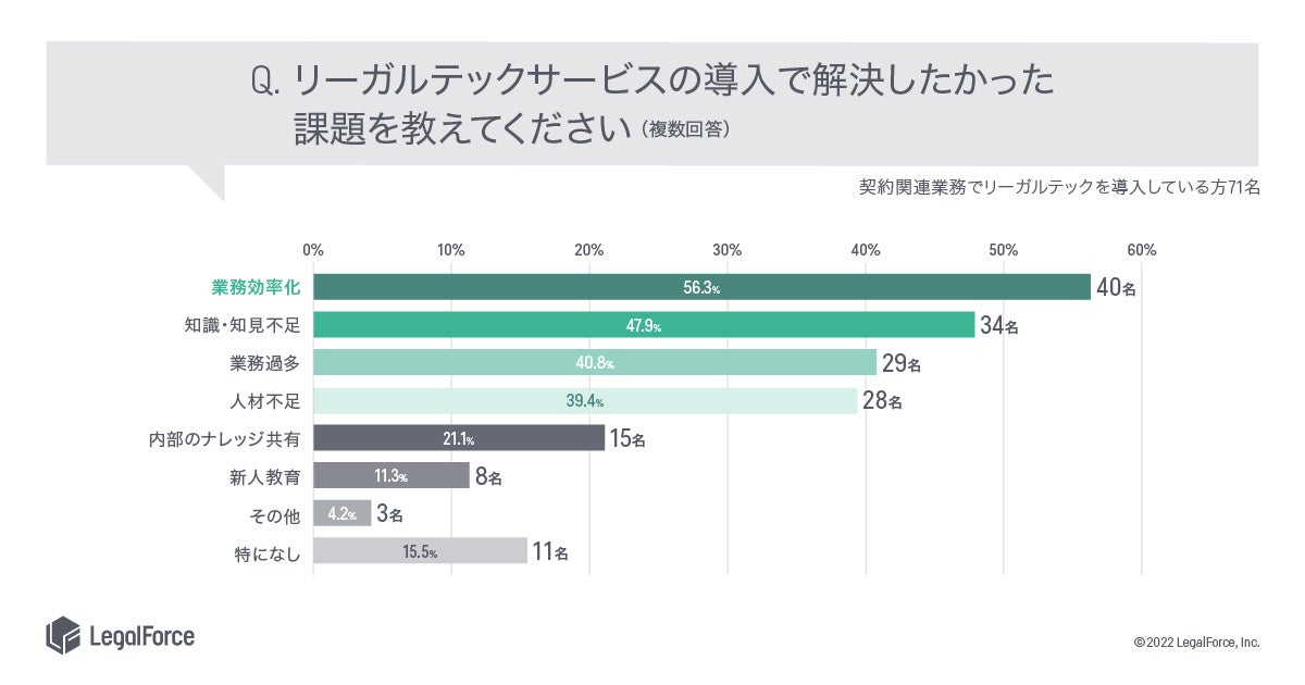 ・リーガルテックサービスの導入で解決したかった課題は「業務効率化」が最多
