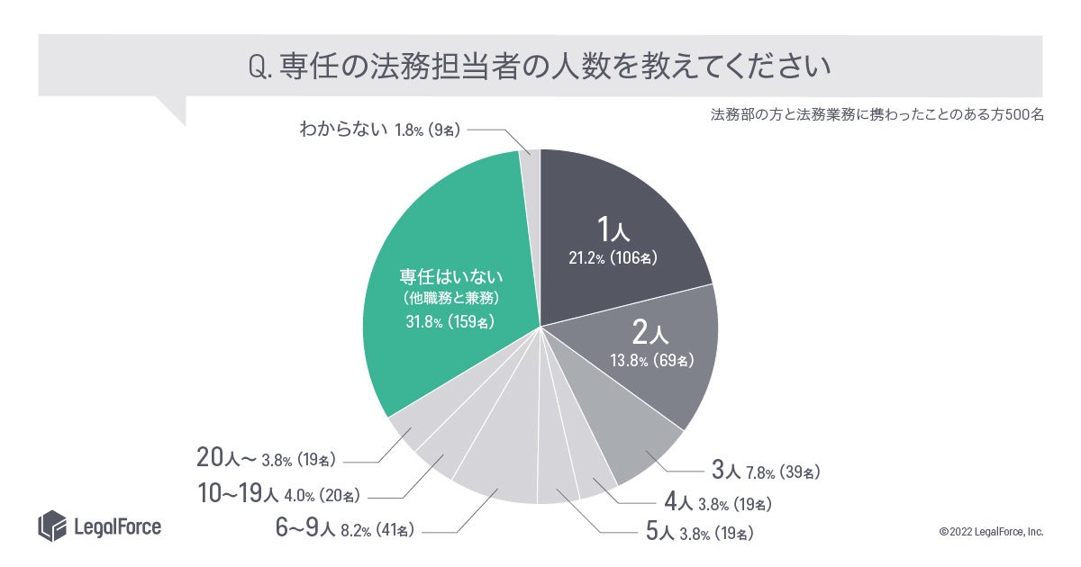 ・31.8%(159名)が法務担当者の「専任はいない(他職務と兼務)」と回答